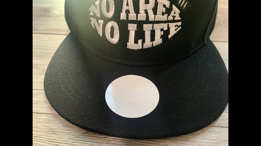 帽子に、台紙シールを貼った後、シールを貼ることによりシールが長持ちします。