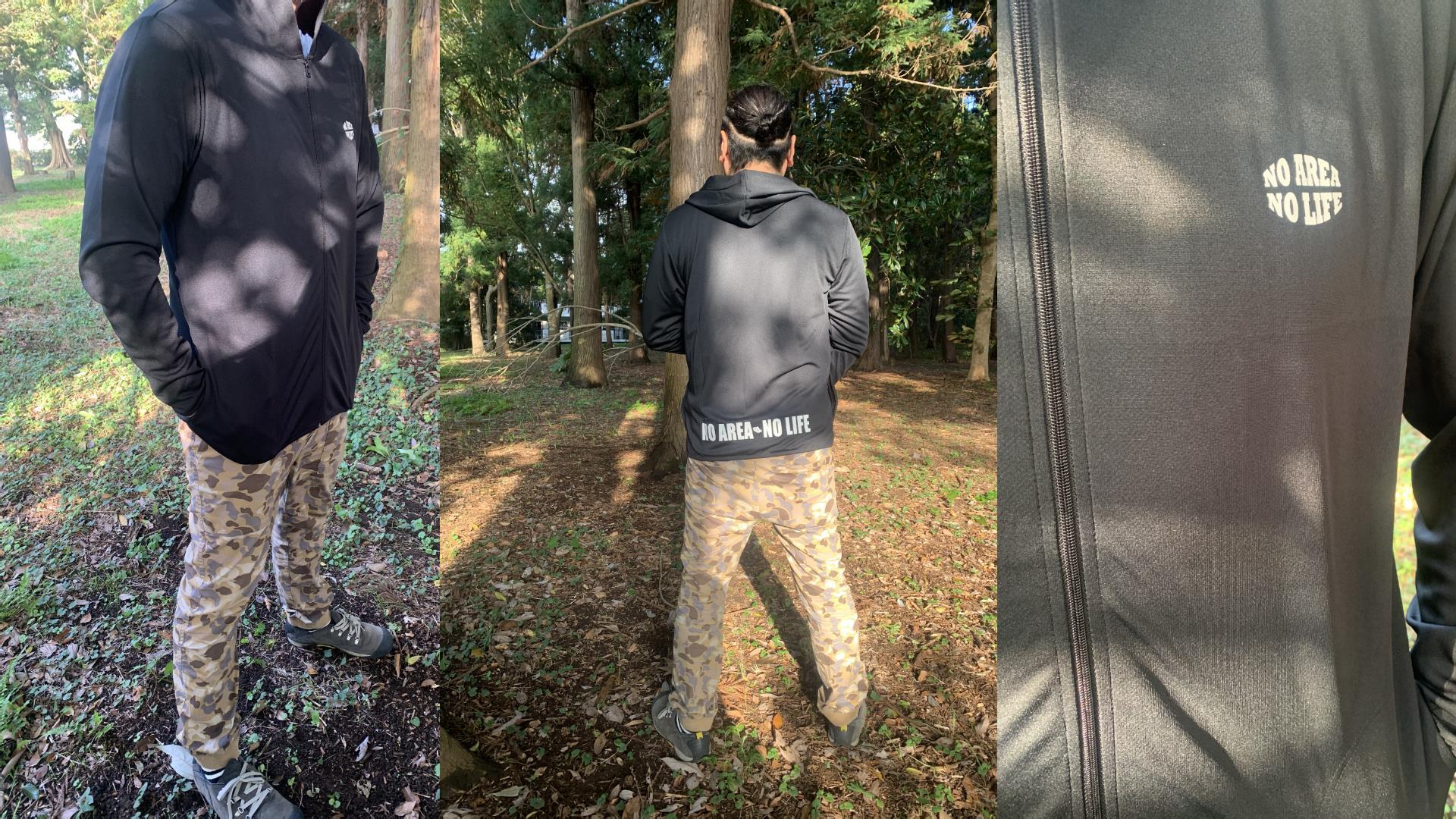 オリジナルデザイン【NO AREA NO LIFE】をフロント胸部分と、背面の裾にデザインしました!背面にはちょこんとメインキャラも登場。