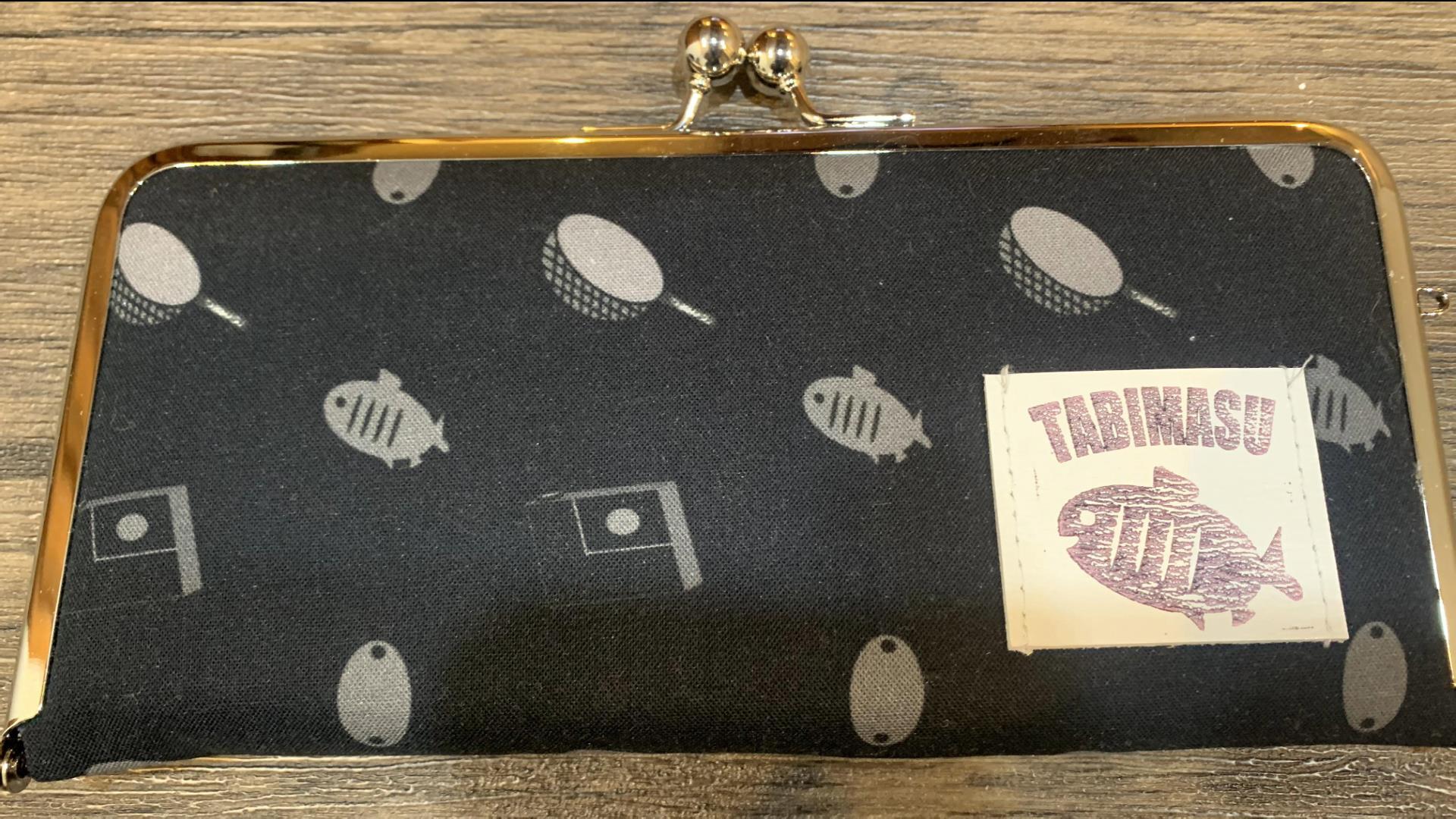 タビマスモノグラム柄の布のオリジナルがまぐちワレットです。