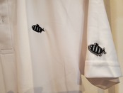 胸部分にタビマスちゃんの刺繍・左袖にはワッペンを縫い付けたオリジナルポロシャツです。