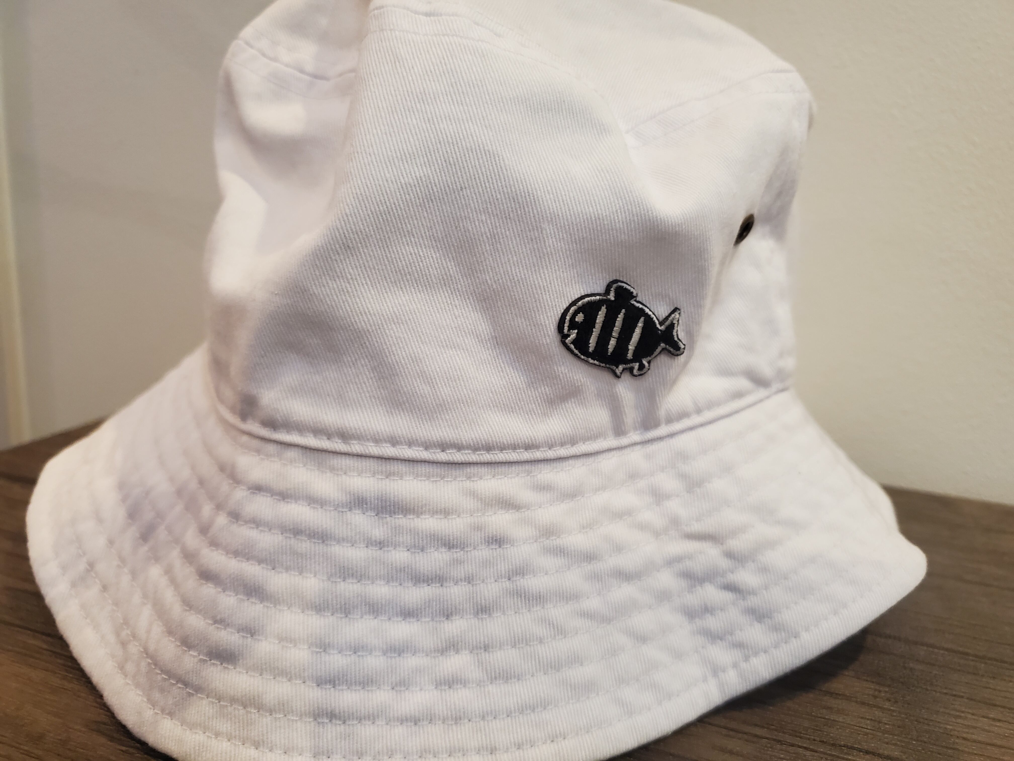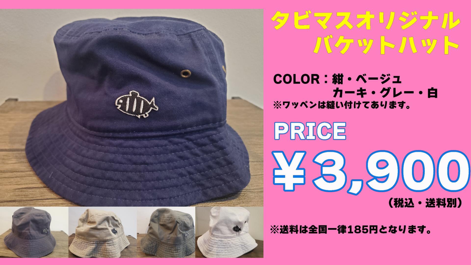 ウォッシュ素材のバケットハットにタビマスワッペンを縫い付けたバケットハットです。